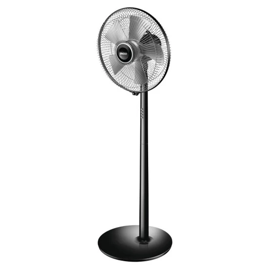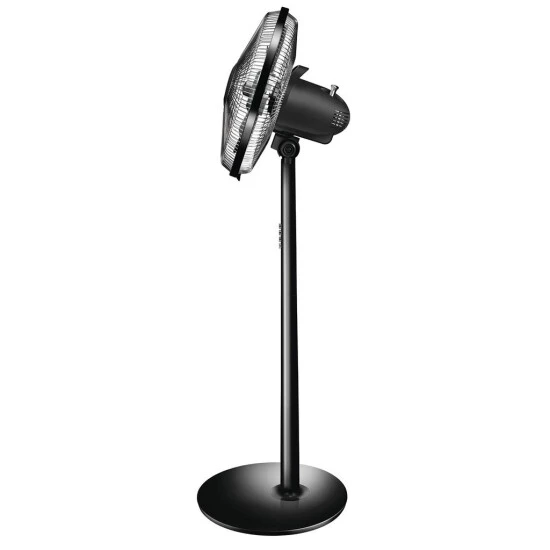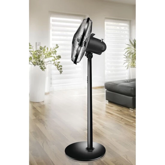 - Der STANDVENTILATOR Silverline Black sorgt in Windeseile für frische Luft. Mit der 3-stufigen Geschwindigkeitsregelung wird die gewünschte Stärke einfach per Tastendruck eingestellt. Die zuschaltbare Oszillation und der verstellbare Neigungswinkel optimieren die Luftzirkulation. Das chromfarbene Ventilatorgehäuse, die silber matten Ventilatorflügel und das schwarz glänzende Fuß- und Säulen-Design machen den STANDVENTILATOR Silverline Black zum trendigen Möbelstück. Der Ventilator lässt sich mit dem praktischen Tragegriff am Gehäuse problemlos transportieren.
