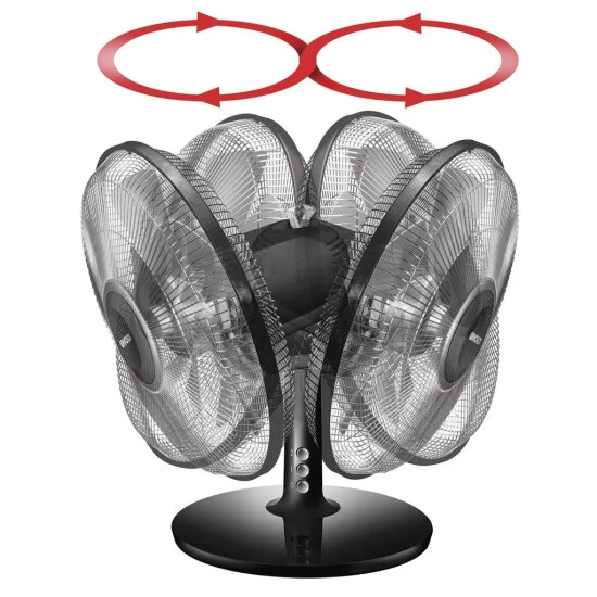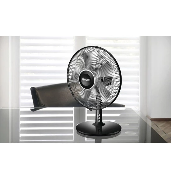 - Die 2-stufige Geschwindigkeitsregelung lässt sich ganz einfach per Tastendruck bedienen. Die zuschaltbare Oszillation und der verstellbare Neigungswinkel optimieren die Luftzirkulation.