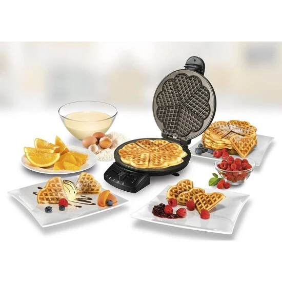 Dekorativer Waffelautomat für den Genuss von 5 frisch zubereiteten Herzwaffeln – ideal für gemeinsames Backen am Tisch.