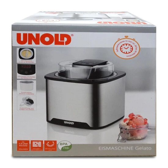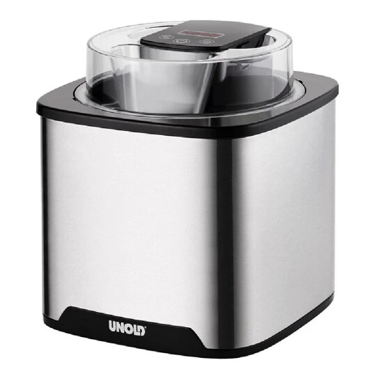 Die BPA-freie EISMASCHINE Gelato liefert in circa 30 Minuten rund 1,5 Liter Sahneeiscreme aus vorgekühlten Zutaten! Auch vegan, laktosefrei oder steviahaltig. Vorher wird der entnehmbare, eloxierte Eisbehälter für 8 bis 12 Stunden im ***-Gefrierfach (-18°C) vorgefroren. Nüsse, Schokostücke oder Früchte können durch die Deckelöffnung zugegeben werden. Das LCD-Display mit Touch-Control-Funktion zeigt die Restlaufzeit und bietet den digitalen Timer für 5 bis 45 Minuten. Mit Rechts-Links-Lauf für coole Ergebnisse. Zur Reinigung komplett zerlegbar. Rezepte bietet die mitgelieferte Bedienungsanleitung.