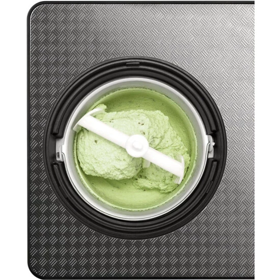 Im eleganten Edelstahl-Outfit mit der geprägten Oberfläche können bis zu 1,5 Liter Eiscreme zubereitet werden. Mit Zutaten nach persönlichem Geschmack – da weiß man, was man genießt!