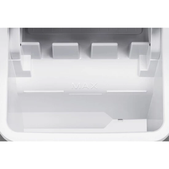 Die Bedienung ist denkbar einfach: Wasser einfüllen, Knopf drücken – und schon geht es los mit der Eiswürfel-Produktion. Die Kontrollleuchte gibt Signal, sobald der Eiswürfelbehälter voll ist. Dann kommt die zur Ausstattung gehörende Eisschaufel zum Einsatz – und sobald der Behälter geleert ist, kann die nächste „Fuhre“ zubereitet werden.