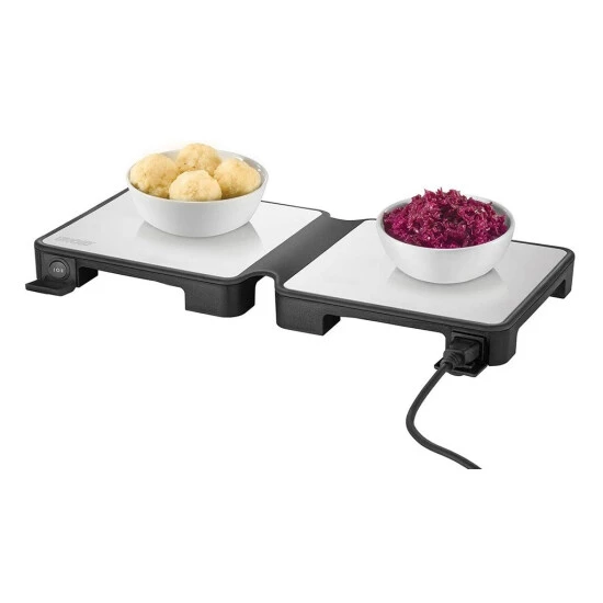 Wenn man für Familie und Freunde ein großes Essen oder Buffet vorbereitet, wünscht man sich, dass man alles warm genießen kann. Dabei hilft die Warmhalteplatte Fold mit ihren rostfreien, antihaftbeschichteten Heizplatten. Auf diesen bleibt das Essen Wenn man für Familie und Freunde ein großes Essen oder Buffet vorbereitet, wünscht man sich, dass man alles warm genießen kann. Dabei hilft die Warmhalteplatte Fold mit ihren rostfreien, antihaftbeschichteten Heizplatten. Auf diesen bleibt das Essen lange auf Genusstemperatur! Zwei Temperaturstufen stehen zur Verfügung: auf Stufe 1 erreichen beide Platten maximal 80°C und auf Stufe 2 maximal 140°C. So kann die Warmhalteplatte Fold nicht nur Speisen auf Temperatur halten, sie kann auch wunderbar Teller, Schüsseln und Servierplatten erwärmen. Features: Ideal zum Warmhalten von Speisen oder Soßen Rostfreie, antihaftbeschichtete Heizplatte Ein-/Ausschalter Funktionsleuchte Überhitzungsschutz Antirutschfüße 2 Temperaturstufen Platzsparend dank Klappmechanismus Technische Daten: Betriebsspannung: 230 V Leistung: 250 W Temperaturstufen: 80 °C, 140 °C Maße: 495x240x43 mm Farbe: schwarz/anthrazit Gewicht: 1,6 kg Lieferumfang: Warmhalteplatte Verbindungskabel Anleitung