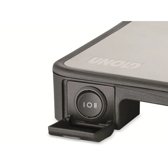 Wird die schwarze Platte nicht benötigt, kann sie platzsparend verstaut werden. Der Klappmechanismus sorgt dafür, dass die zwei quadratischen Heizplatten (24 x 24 cm) überall Platz finden!