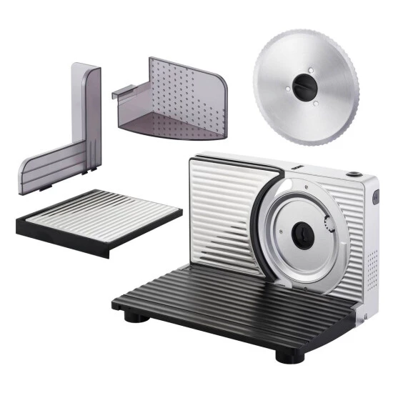 Zusammenklappbarer Allesschneider, entnehmbares Edelstahl-Wellenschliffmesser, 0-15 mm Schnittbreite, Sicherheitsschalter mit Kindersicherung, abnehmbarer Restehalter mit Fingerschutz, Kabelaufbewahrung, Antirutschfüße, 220-240 V, 50/60 Hz, Material: Kunststoff/Edelstahl
