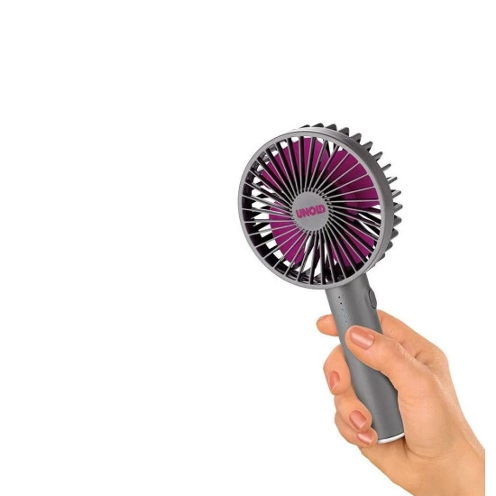 Unold Handventilator 86629 Breezy II PolyurethanHersteller: Unold Bezeichnung: Handventilator Breezy II purple Typ: 86629 Breezy II PolyurethanWerkstoff: Kunststoff Farbe: weiß Leistungsaufnahme: 0,004 kW Breite: 100 mm Tiefe: 83 mmUnold Handventilator 86629 Breezy II pu: weitere DetailsAkku-Handventilator (2000 mAh), 5 Geschwindigkeitsstufen mit LED-Kontrollleuchte, Akkubetrieb je nach Stufe 2 – 2,5 – 3 – 4 und 8 Std., Ladezeit 3 Std., Ladestrom DC 5/1000 mA, USB-Anschluss kann mit Handy, PC, oder Power Bank verbunden werden, magnetischer Standfuß mit integriertem Spiegel, Ein-Ausschalter, inkl. USB-Ladekabel Geliefert wird: Unold Handventilator Breezy II purple 86629 Breezy II pu, Verpackungseinheit: 1 Stück, EAN: 4011689866296