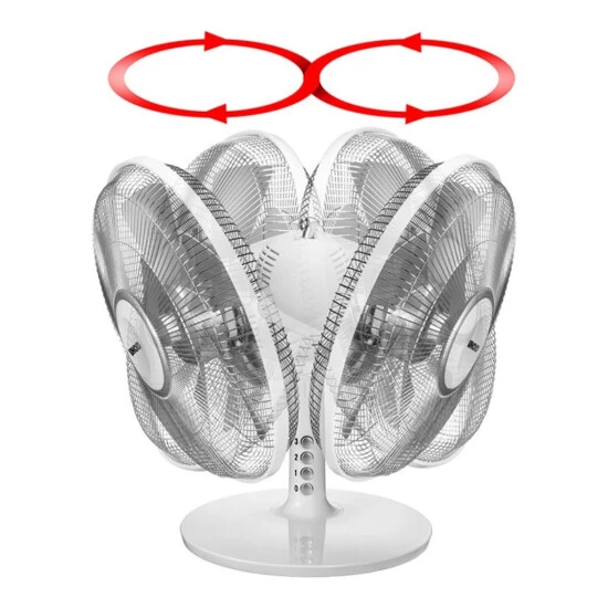 3-stufige Geschwindigkeits Leistungsstarker DC Motor regelung per Tastendruck. 2 Geschwindigkeits-/ Oszillation zuschaltbar. Temperaturstufen. Gehäuse chromfarben,Venti Cool-Air-Taste lator silber-matt. Diffusor Ø 30 cm,Kabellänge ca.150cm