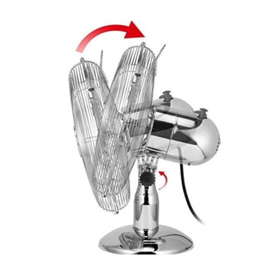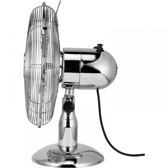 Der Tischventilator 86830 Chrome bietet drei per Tastendruck wählbare Geschwindigkeiten bei einer Leistung von 35 Watt. Die Oszillation ist zuschaltbar und der Neigungswinkel verstellbar.