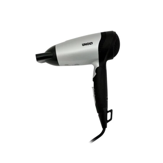 Beim Sport, im Urlaub oder Zuhause. Der Haartocker Go von UNOLD ist ein zuverlässiger Partner, wenn es ums schnelle Haartrocknen geht. Zwei Geschwindigkeits- und Leistungsstufen von 1.500 bis 1.800 Watt stehen immer und überall zur Verfügung, denn das Gerät ist von 110-120 Volt auf 220-240 Volt umschaltbar. Damit ist auch im Ausland Haare trocknen kein Problem. Die Ondulierdüse ist abnehmbar. Und wird das Gerät mal nicht , kann es an seiner praktischen Aufhängeöse einfach an der Wand abhängen. Für unterwegs macht sich der klappbare Go ganz klein und findet so in jeder Sport- oder Reisetasche Platz.