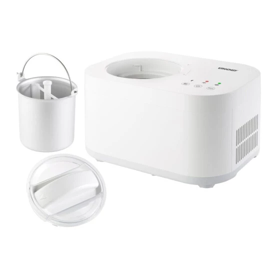 Volumen für ca. 1 Liter Eiskreationen, Sahneeiscreme in nur ca. 30 Minuten (bei vorgekühlten Zutaten), eignet sich auch sehr gut für vegane, laktosefreie und steviahaltige Eiskreationen, vollautomatischer, selbstkühlender Kompressor für kontinuierliche Kälteerzeugung, Gefrierbereich bis ca. -35 °C, digitaler Timer, einstellbar von 5 bis 60 Minuten, 3 Programme mit Zeitwahl, entnehmbarer, eloxierter Eisbehälter zur leichten Reinigung, einfach zu bedienen, Kühlmittel R600a, Zubehör: Bedienungsanleitung mit Rezepten