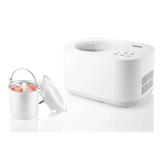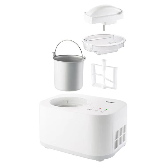 Eis geht immer! Zu jeder Jahreszeit! und wenn es dann auch noch in der eigenen Küche zubereitet werden kann: Prima! Selbstgemachte Sahneeiscreme zaubert die Eismaschine Snow mit vorgekühlten Zutaten in nur ca. 30 Minuten. Dann kann etwa 1 Liter Eis vernascht werden. Der Vorteil von hausgemachtem Eis: Man weiß, was drin ist! Individuell ausgesuchte Zutaten verwandeln sich zu Köstlichkeiten. Auch veränderten Ernährungsgewohnheiten wird die Eismaschine Snow gerecht, denn auch vegane, laktosefreie oder steviahaltige Eiscreme lässt sich problemlos zubereiten. Der vollautomatische, selbstkühlende Kompressor stellt eine kontinuierliche Kälteerzeugung sicher, der robuste Motor des schneeweißen Hinguckers ist für den Dauerbetrieb geeignet.