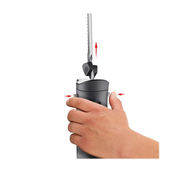 Und das akkubetriebene Elektromesser Cordless ist dafür der ideale Begleiter. Mit Hilfe zweier austauschbarer Edelstahl-Messer ist das Schneiden aller erdenklichen Lebensmittel ohne Probleme möglich.