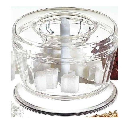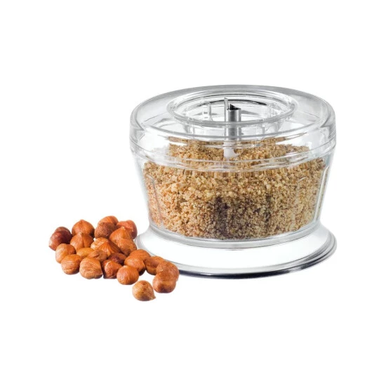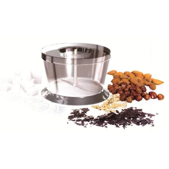Ein kompakter Zerkleinerer als Ergänzung für alle Zauberstab-Modelle. Diese Mahlschale ist unentbehrlich in der Küche zum: Zerkleinern und Mahlen von Nüssen, Gewürzen, Schokolade, Kaffee, Würfelzucker zu Puderzucker usw.