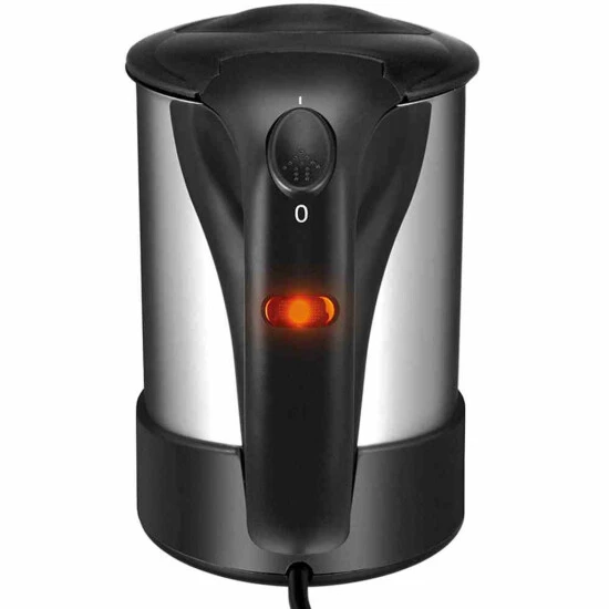 Material: Edelstahl Maße: ca. 16,5 x 16,7 x 11,6 cm Farbe: schwarz, silberfarben Füllmenge: ca. 0,5 Liter 1000 Watt Einstellbar zwischen 120 und 230 Volt Mit Kontrollleuchte Mit Schukostecker CEE 7/7 Lieferumfang 1 x Wasserkocher, 2 x Becher, 2 x Löffel, 1 x kleiner Aufbewahrungsbehälter für beispielsweise Kaffeepulver